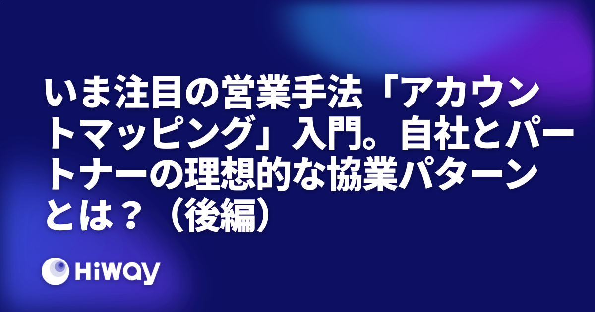 いま注目の営業手法「アカウントマッピング」入門。自社とパートナーの理想的な協業パターンとは?(後編)